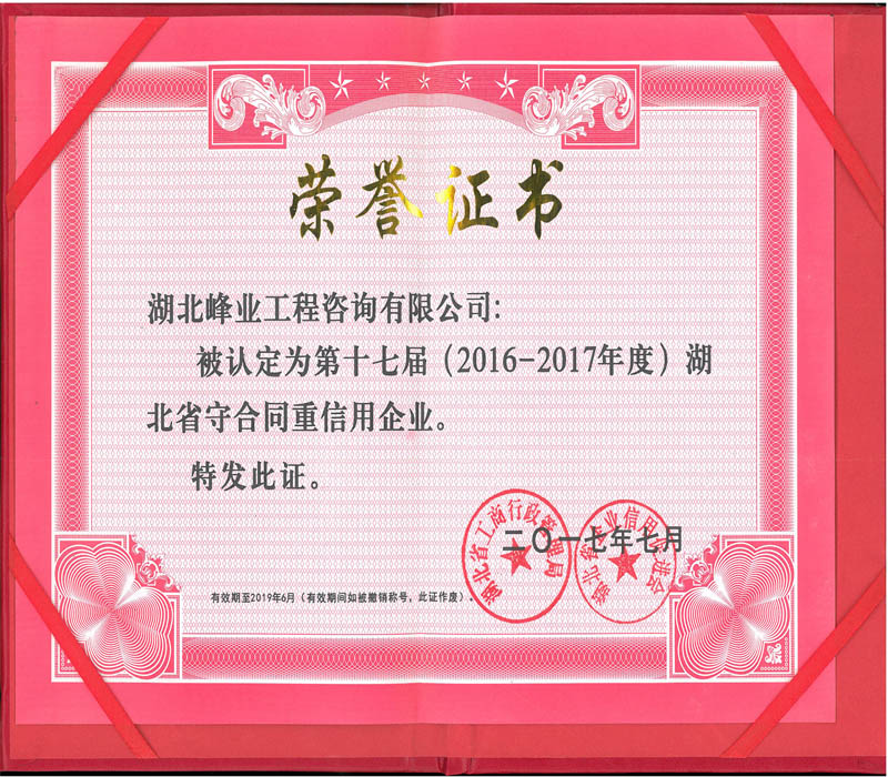 公司擁有強大的技術、管理、服務力量,在發展過程中不斷加強公司制度化、規范化、標準化建設,恪守“以質量求生存”“以信譽求發展”,我們堅持獨立、公正、科學的原則,恪守職業道德,嚴謹工作。一份耕耘一份收獲, 2010年公司榮獲湖北省建設廳“先進造價咨詢單位”稱號;2011、2013年連續兩次榮獲湖北省工程造價咨詢企業AAAA信用等級;2010、2011、2012連續三個年度榮獲武漢市工商行政管理局“守合同重信用企業”稱號。